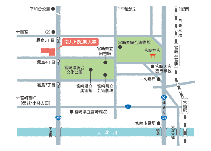 | ●JR「宮崎神宮駅」から徒歩約20分 |