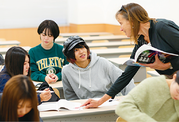 選択必修科目 ●時事英語 ●英語ライティング ●単位認定留学Ⅲ ●異文化コミュニケーション論 ●持続可能な社会と環境:SDGsの視点から ●Practical EnglishⅠ・Ⅱ・Ⅲ・Ⅳ・V