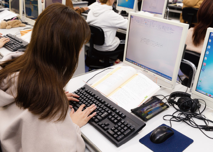 | 選択科目 | ●パソコン基礎演習Ⅱ ●経営学 ●ウェブデザインⅠ・Ⅱ ●プレゼンテーション概論 ●プレゼンテーション演習 ●情報処理学Ⅰ・Ⅱ ●ボランティア実践Ⅰ・Ⅱ ●日本文化(茶道Ⅱ) ●グローバル文化交流 ●国外研修Ⅰ ●キャリア入門 ●キャリア開発実習 ●英検実践Ⅰ・Ⅱ ●TOEIC実践Ⅰ・Ⅱ・Ⅲ ●TOEFL実践Ⅰ・Ⅱ・Ⅲ ●海外研修Ⅰ・Ⅱ ●日本語演習 ●マーケティング ●ファイナンシャルプランナー入門Ⅰ・Ⅱ ●リスニング&スピーキング Ⅰ・Ⅱ ●ホスピタリティ・マネジメント ●情報リテラシー ●映画を通して学ぶ英語 ●洋楽を通して学ぶ英語 ●文章表現と基礎Ⅱ |