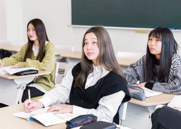 | 共通教育科目 | ●哲学 ●日本史 ●憲法 ●法律学 ●統計学 ●社会学 ●心理学 ●人間形成論 ●体育実技Ⅰ・Ⅱ ●日本文化(茶道Ⅰ) ●国外研修Ⅱ ●韓国語Ⅰ |