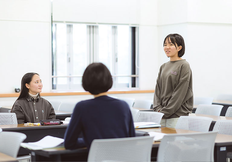 4年制大学へ編入するためには、大学1、2年次の教養教育科目において「学び方を学ぶ」力を身に付ける必要があります。そこで、本科目では様々な文章を読みながらクリティカル・シンキングカ(批判的思考力)を養成します。