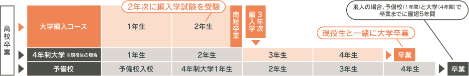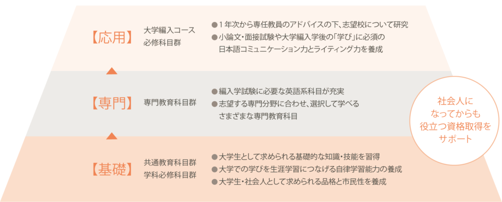 | コース必修科目 | ●大学編入実践演習 ●面接指導演習Ⅱ ●小論文演習 |