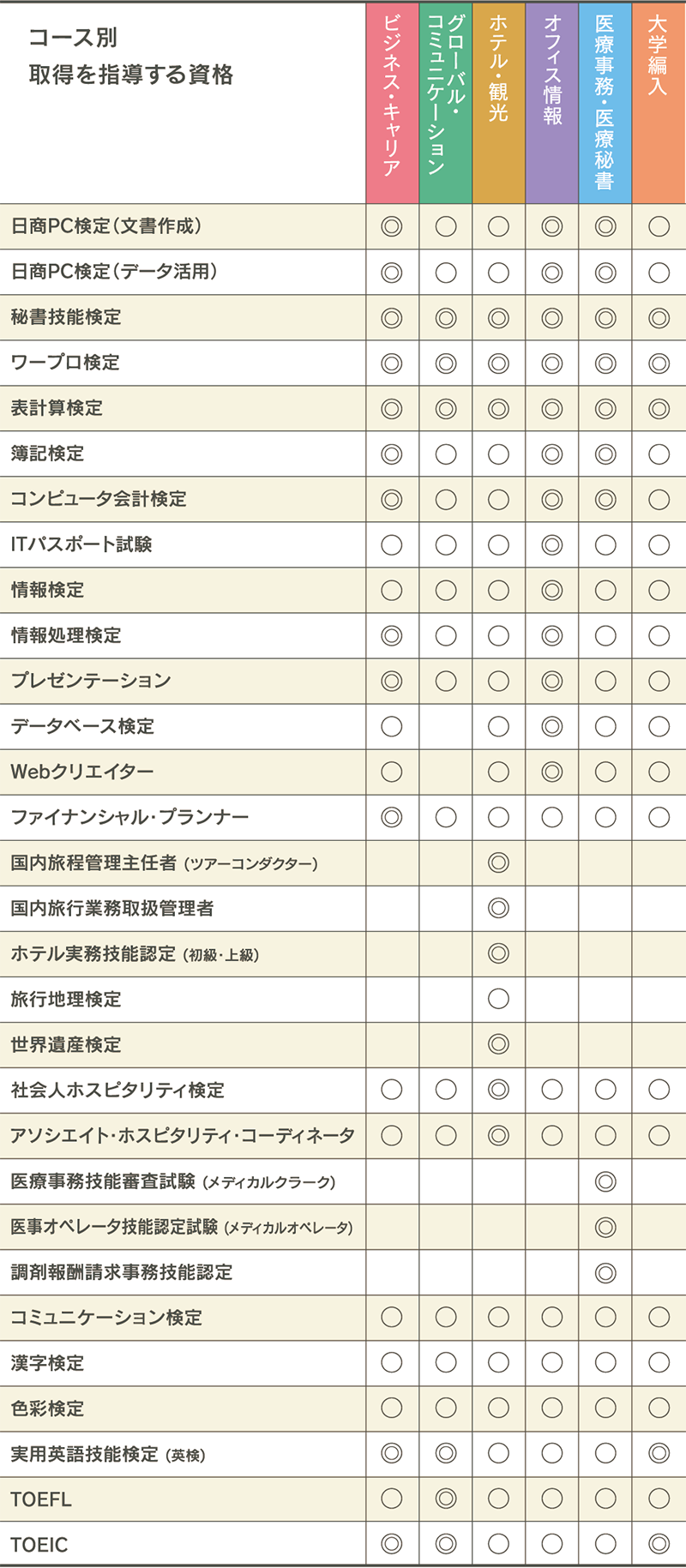 ◎・・・特に取得を推奨している資格