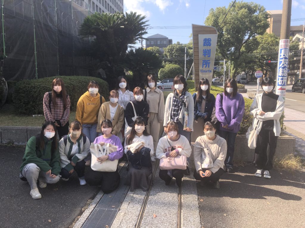 法律の実際の運用を確認するために、宮崎地方裁判所に裁判員裁判を傍聴に行きました。また裁判傍聴後、裁判所職員の方に、裁判員について、法廷について、職員採用試験についてなどの説明を受けました。