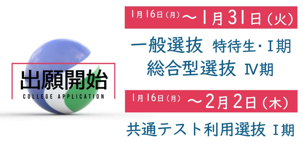 【受付終了】一般選抜(特待生・Ⅰ期)・総合型選抜(Ⅳ期)・共通テスト利用選抜(Ⅰ期)の願書受付