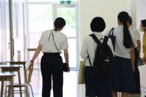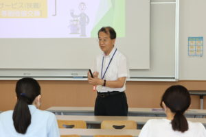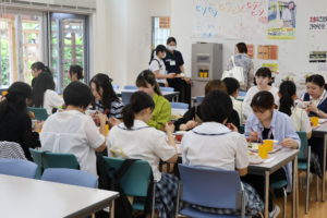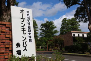 7月15日(土)、南九州大学短期大学部にてオープンキャンパスを開催しました。学科紹介や入試説明、コース毎の模擬授業、エアライン講座、在学生によるキャンパスツアー、学食体験を行いました。