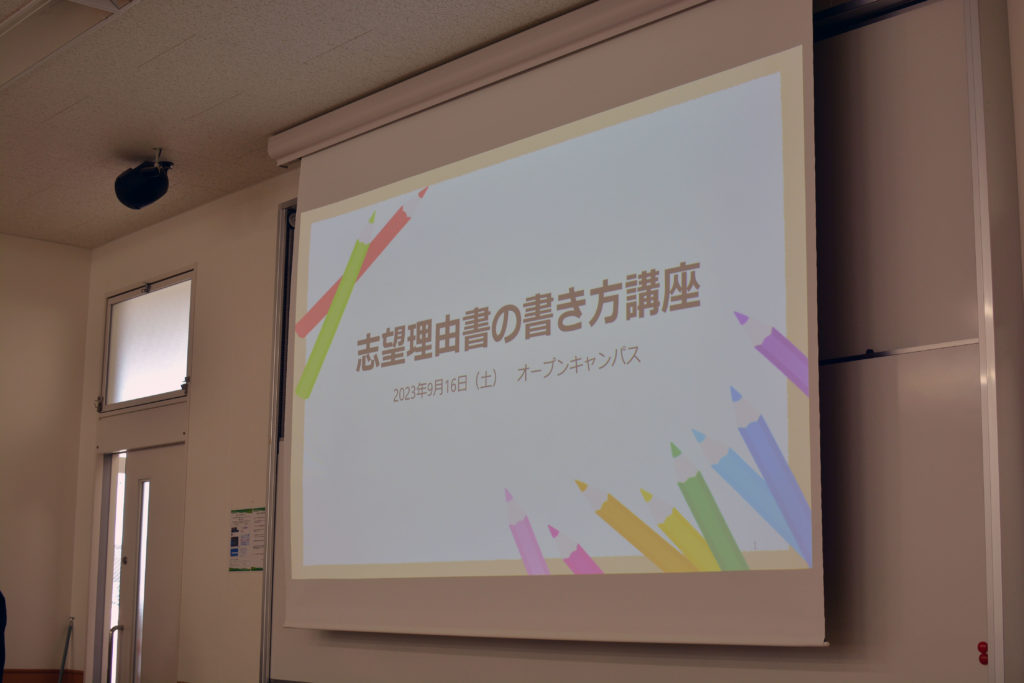 今月は特別企画として卒業生によるパネルディスカッション、志望動機の書き方講座、恒例のコース毎の模擬授業、在学生によるキャンパスツアーなどを行いました。