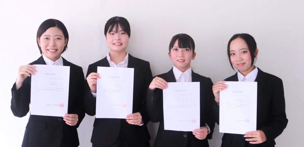 面接試験では緊張して練習通りにできるか心配でしたが、とにかく笑顔を意識しました。上手くできたか結果を知るまで不安が大きかったのですが、先生から合格を伝えられたときはとても嬉しかったです。共に練習し支えあった仲間、指導してくださった先生の存在があったからこそ成し遂げられた合格だと感じました。今後は秘書検定で学んだ、関連関係性を考えて物事を見ることや目の前の人を大事にするといったことを意識して、日々成長できるよう努めていきます。