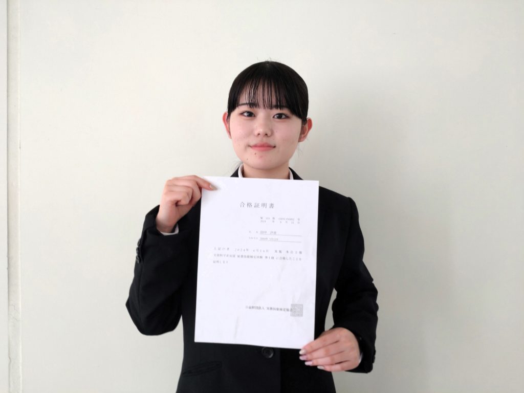 3級、2級と合格していくうちに、よりレベルの高い級に挑戦したいと思い、受験しました。また、受験することで社会に出て必要な知識を身につけられ、自分に自信を持つことができるのではないかと考え、挑戦しました。