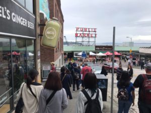 シアトルでの9日間の研修を終え、無事、参加学生が帰国しました。ホストファミリーやワシントン大学の学生アンバサダー(親善スタッフ)との親交、現地の小学生に日本の文化(おもしろ文具とフードサンプル)を紹介したプレゼンテーション、アメリカの国民的娯楽であるメジャーリーグ観戦、スターバックス・コーヒー1号店のあるパイク・プレイス・マーケット観光、日経アメリカ人の歴史を考えさせられたウィング・ルーク・ミュージアム観光など、盛りだくさんの内容でした。