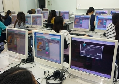 これまでにプログラミングを体験したことのある学生はいませんでしたので、最初は戸惑う姿も見られました。