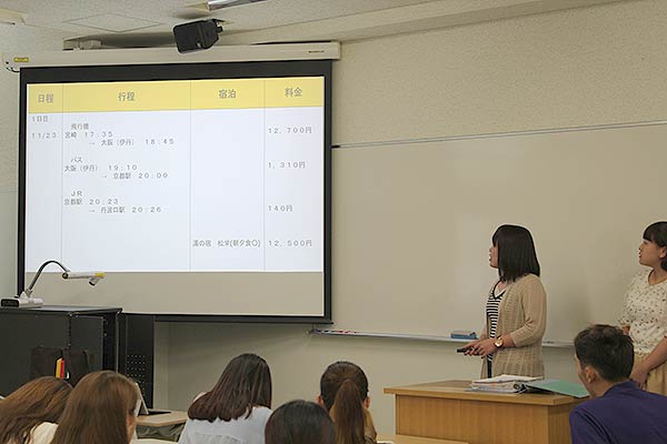 ホテル・観光コースでは例年、学生自身による着地型旅行企画を「観光ビジネス実務総論」という科目において、最後の時間に、プレゼンテーションを行っています。