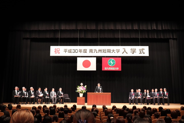 宣誓の後、学長より「これからの時代は皆さんが主役の時代です。積極的に自己の可能性にチャレンジし、南九州短期大学生として教養と人間としての品格の向上を目指して学生生活を送ってください」と式辞が述べられました。