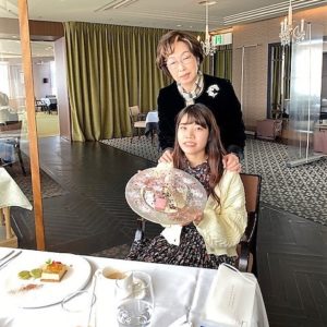 シエラトン・グランデ・オーシャンリゾート42階のレストランにて楽しいひと時を過ごしました。ドレスコードという訳ではありませんが、「初めてのデートに出かけるような装いでいらしてください」と参加学生にリクエストしました。まだ、そのような機会がない学生は、友人にも相談したそうです。そして、かろやかな花柄のワンピースにオフホワイトのカーディガンを羽織り満面の笑みで現れました。