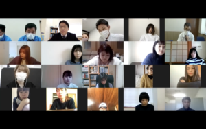 コロナ禍のため、今回は初めてのオンラインによるプレゼンテーションとなりました。当日は3年前から継続して参観していただいている株式会社マスコ(ドレッシングの製造販売や、居酒屋「恵屋」などの飲食店を宮崎、鹿児島を中心に30店舗以上展開)の皆様、宮崎銀行地方創生部地域振興グループの皆様、そしてテーマを提供してくださった国富町役場企画政策課の皆様にもゲストとしてオンラインでご参加いただきました。南九州大学と本学の教員からも参観者がありました。
