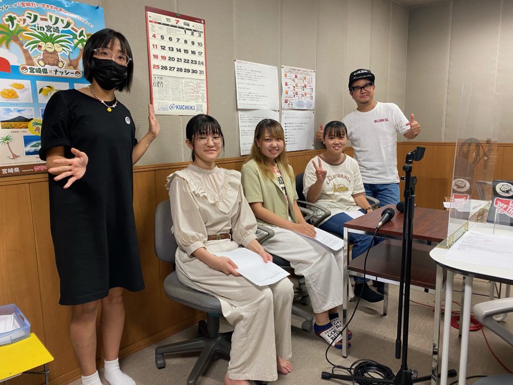 7月28日(水)、FM宮崎「Radio Paradise 耳が恋した!」に、オフィス情報コース1年生の飯干 ノアさんと稲尾 優美香さん、原 瑞希さんの3人が出演しました。