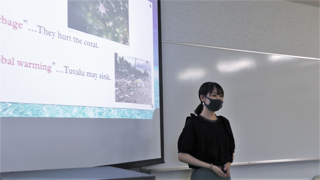 受講生は2回のリハーサルを含めて、計3回発表しました。回を重ねるごとに少しずつ人前での発表にも慣れ、自信がついたようです。また、自らの調査からだけでなく、クラスメートの発表からも世界へ視野を広げるきっかけが得られたのではないかと思います。