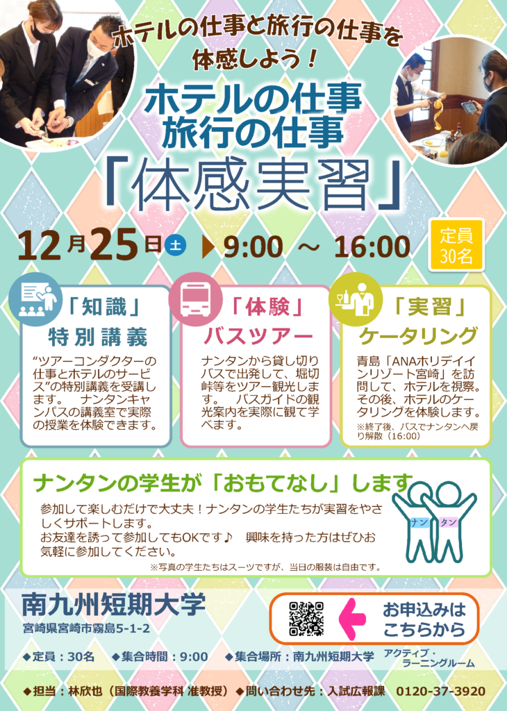 南九州短期大学では、「ホテル観光コース」の授業を体験