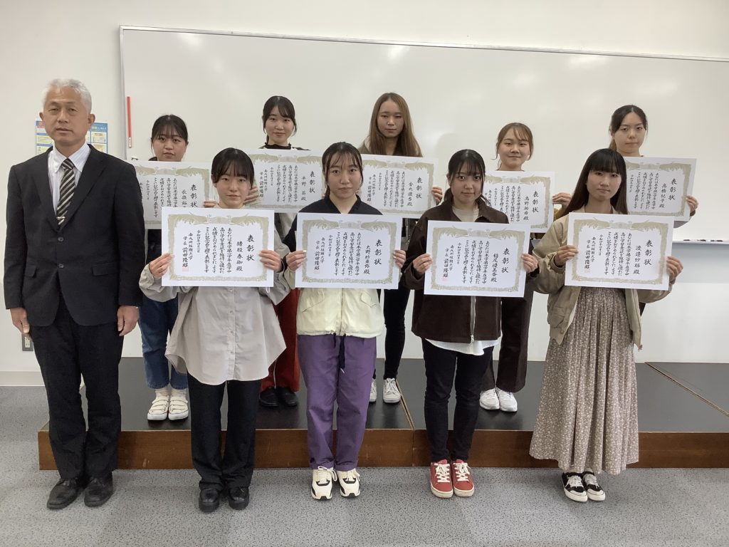 4月1日(金)に行われたオリエンテーションにおいて1年次成績優秀者の表彰式が行われ、新2年生の10名が表彰されました。
